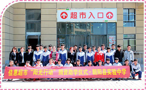 4月20日,上午9時,北國的初春陽光明媚,在副總經(jīng)理劉學(xué)慧的帶領(lǐng)下,佳惠超市有限公司一行5人帶著佳惠人的夢想、責(zé)任、使命和感恩回報社會的火熱之心,踏上了去往朝陽縣實現(xiàn)中學(xué)的路程?;锇閭兇诵袑閷嶒炛袑W(xué)的部分貧困學(xué)生送去佳惠“陽光行動”的溫暖。